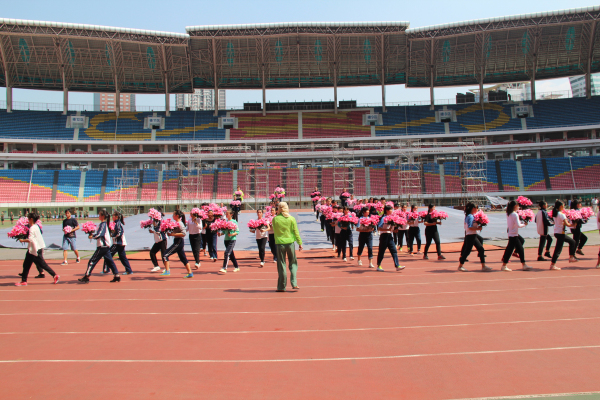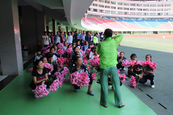 集合、列队、踏步、踩上节拍、找准位置、舞起来……,导演发出一连串的指令,同学们在音乐带领下走上舞台,开始表演。为达到预期效果,同学们来来回回练习了许多遍。