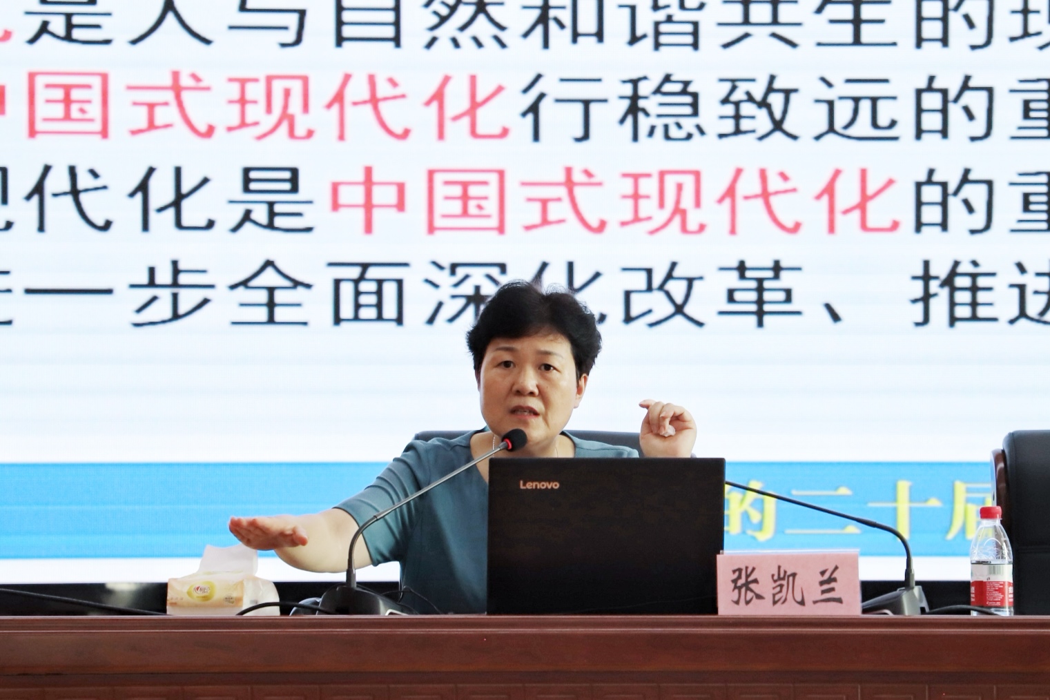 宣讲中,张凯兰以“进一步全面深化改革,为中国式现代化提供强大动力和制度保障”为主题,从深刻认识全会的重大意义,深入学习领会习近平总书记在全会上的重要讲话精神,全面准确理解《中共中央关于进一步全面深化改革、推进中国式现代化的决定》提出的进一步全面深化改革重大举措、全力以赴抓好全会精神贯彻落实等方面,对全会精神作了全面系统的阐释和宣讲。