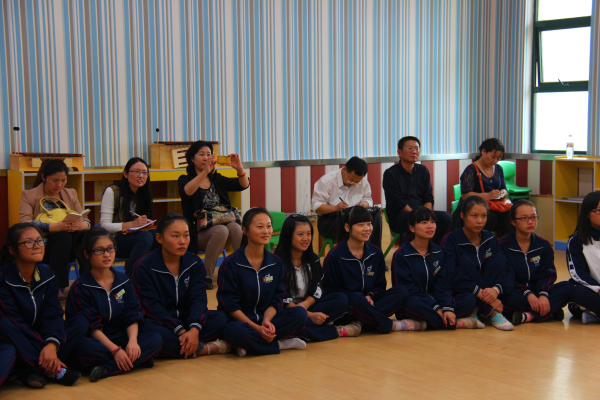 李副校长向李处长一行介绍了学校的历史与文化,播放学校的专题介绍片,并就学前教育专业建设情况进行了深入交流,详细介绍了我校示范性学校的建设、专业建设、校园文化建设、教学管理、学生管理、校企合作等情况。随后,李副校长陪同客人参观了学校艺馨楼、技馨楼,逐一介绍了各个教室的配套设施,详细讲解了我校在培养学生全面发展的综合素质和职业素养的成功做法。客人们对此表示赞赏,并饶有兴致的旁听了三堂课,分别是由我校音乐组刘霞老师上的奥尔夫音乐课、万荃双老师上的主题为《导入技能》的活动设计课以及蒋珊珊老师所上的心理学课程,课后与老师、同学们进行了亲切会谈。