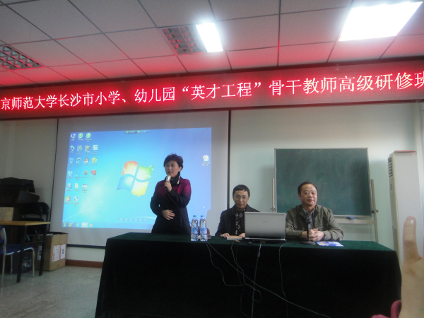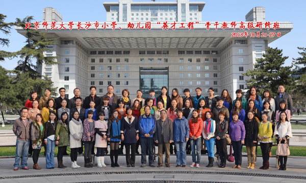 10月19日至10月31日,由我中心组织的长沙市小学、幼儿园“英才工程”骨干教师高级研修班赴北京师范大学进行了为期13天的集中培训学习,共有51名来自长沙市小学、幼儿园教育教学一线的骨干教师参加了此次培训。此次培训共聆听了原教育部基础教育司王文湛司长等10多名教授、专家的精彩讲课,并参观了北京市有名的史家小学、育新实验幼儿园等,参培的教师迅速地完成了由教师到学员的角色转变,认真虚心地接受培训,聆听智慧的声音,与授课教师积极互动,如饥似渴地接受着新思想、新理念,完成了又一次学识与心灵的洗礼。24~25日,长沙市教育局的邓芸副局长、教师工作处的陈利群处长不畏旅途辛劳,亲临北师大看望培训学员们,让所有学员备受感动与鼓舞。