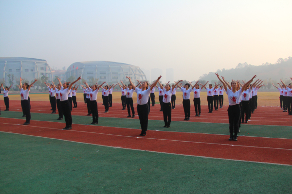 红旗猎猎,国旗迎风,在激昂的运动员进行曲旋律中,我校红旗队齐刷刷的舞动着手里的旗子,气势恢宏。紧接着由我校女老师集体带来的最流行的“广场舞”,老师们一出场就引起了全场的欢呼,跟着旋转、走位、舞起来,掀起了运动会的一个小高潮。匠心独具的表演使现场惊喜不断,掌声雷鸣,师生们创意尽显,才华尽露,全方位的展示了他们的想象力和表现力,带给了全体师生一场无与伦比的视听盛宴。