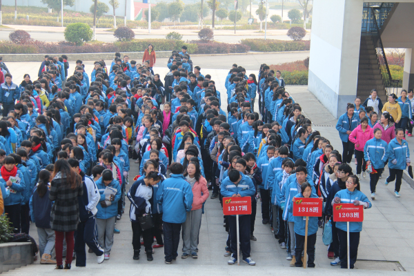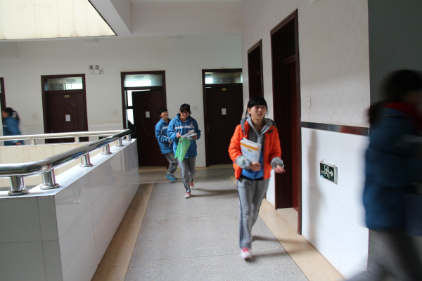 听到警报后学生迅速撤离教学楼