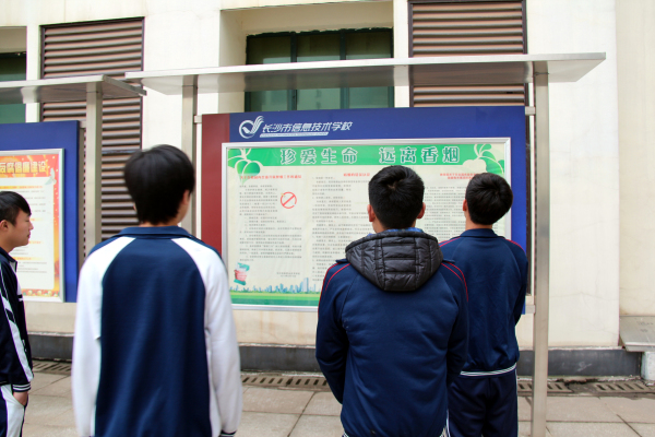 “史上最严”校园禁烟令启动,凡进入中小学、中职学校、幼儿园,任何人、任何地点、任何时间一律不得吸烟。我校积极响应教育部的禁烟政策,将禁烟工作纳入学校管理工作之中。为确保禁烟工作长效实施,全面扫除禁烟盲区,学校禁烟工作领导小组成为还承担禁烟监督员职责,采取不定期抽查制和值班制相结合的方法,在校园内进行巡查,重点检查教师办公区、学生宿舍区、厕所等重灾区。