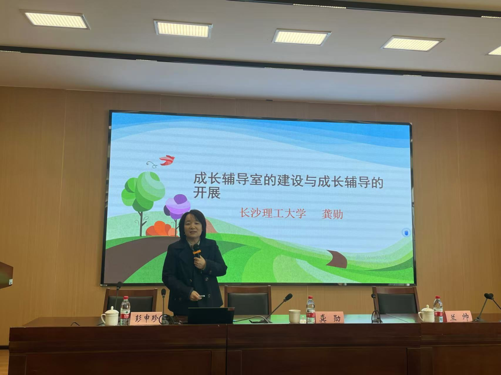 11月14日,我校特色成长辅导室启动仪式暨培训大会在道馨楼503举行,特邀中国心理学会注册督导师、注册心理师、长沙理工大学心理健康教育中心教师、湖南师范大学教育学院硕士生导师龚勋前来为我校指导工作。学生工作与安全保卫处处长兰帅,各院德育副院长、心理专干,校心理发展指导中心(以下简称心理中心)教师,全体专兼职辅导员以及心理委员代表参加了启动仪式。仪式由心理中心教师彭申珍主持。