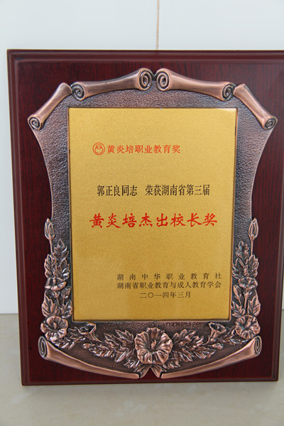 4月25日,湖南中华职业教育社第四次社员代表大会在长沙隆重召开。长沙市信息职业技术学校郭正良校长荣获"黄炎培杰出校长奖"。这表明我校人才培养质量得到了社会的广泛认可,是对我校办学成绩的肯定与鼓励。湖南省委常委、统战部长李薇薇,省政协副主席、湖南中华职教社主任刘晓等领导出席会议并发表讲话。