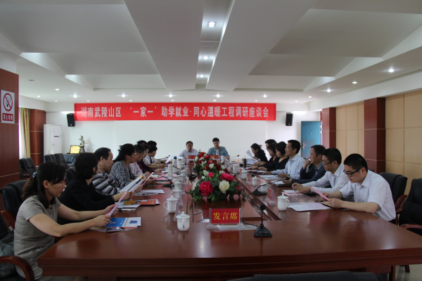 湖南武陵山区同心温暖工程“一家一”助学就业项目由省委统战部、省教育厅共同组织,湖南中华职业教育社具体实施,各民主党派、无党派人士等统一战线成员广泛参与,该项目实施模式即在全省范围内选择一批优质职业院校作为项目实施学校,选拔武陵山区域内有意愿继续学习同时品学兼优的贫困学生接受职业教育,通过公益资助的方式帮助他们完成学业,实现“普通教育——职业教育——企业就业”三位一体的项目模式,达到“教育扶贫、生态移民”的目的。