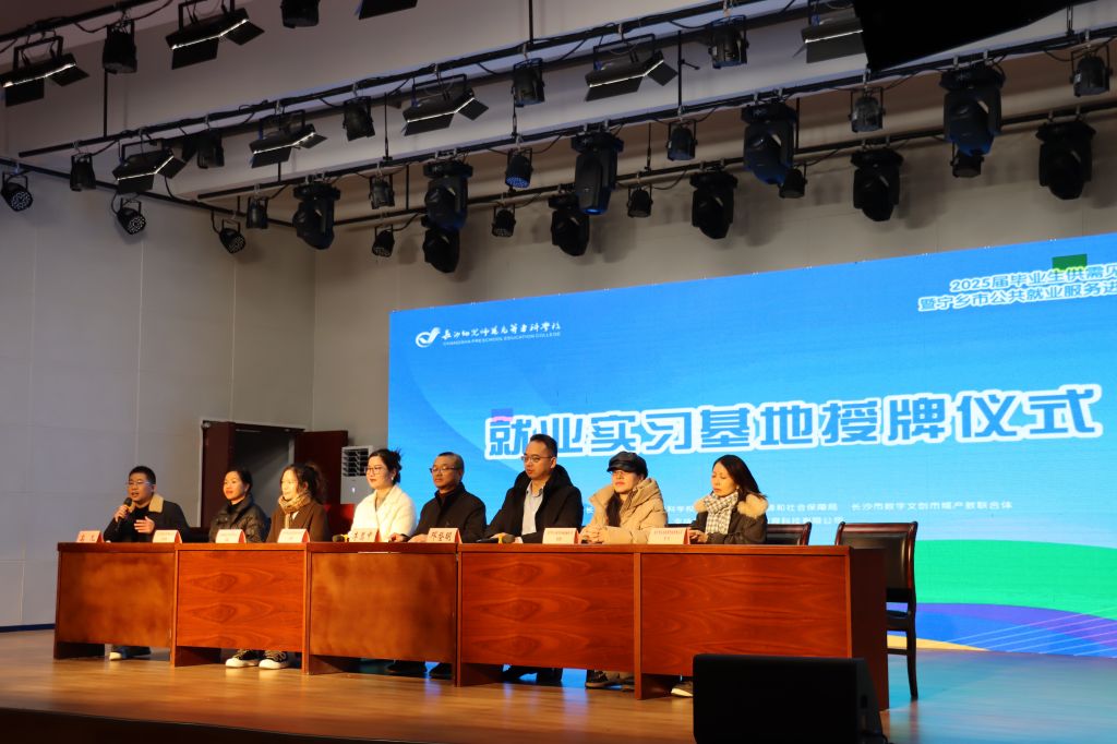 活动还举行了就业实习基地挂牌仪式。出席仪式的领导和嘉宾包括:党委副书记兼纪委书记李慧中、学前教育学院党总支书记彭繁珍、艺术学院党总支书记伍莉、信息技术学院党总支书记李科、教务处处长邓登明、招生就业处副处长高凡、长沙市雨花区教育局悦东方幼儿园、长沙市天心区教育局幼幼披塘幼儿园、长沙市开福区教育局广泽上苑幼儿园、宁乡市东方红郡幼儿园等合作企业代表。