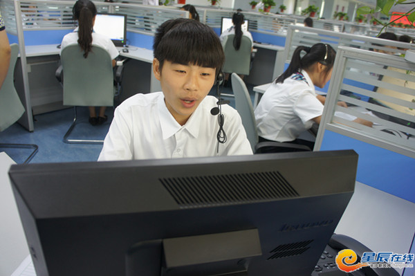 长沙信息职业技术学校的实训基地里,呼叫中心学生正熟练的进行业务操作。