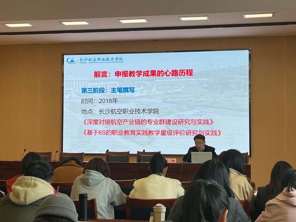 为进一步深化教育教学改革创新,做好本学期省级职业教育教学成果奖的申报工作,3月19日,我校邀请长沙航空职业技术学院发展规划处处长刘阳做专题讲座。学校党委委员、宣传统战处处长阳艳波、教务处处长邓登明、各学院(部)院长、教学副院长、各专业带头人、教研室主任及教学成果奖申报团队成员共计80余人参会,会议由邓登明主持。
