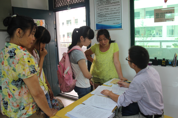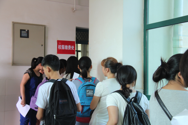 前来报到的学生及家长喜笑颜开