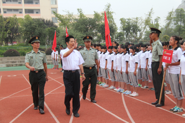 阅兵仪式在雄壮的国歌中正式开始。郭正良校长在国防科技大学人文院刘坤参谋长、杨国锦少校陪同下检阅了2014级新生各连队。随后,全体高一新生以班级为单位,分别表演了军姿、立正、稍息、跨立、踏步走、步法变换及军训检阅等项目,展现军训成果。