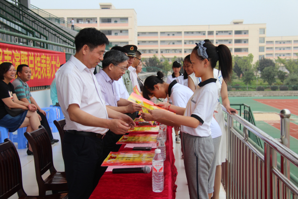 学校校长郭正良、党委书记张国斌、纪委书记李深山、副校长李慧中、学生科科长陈郁以及国防科大人文学院杨国锦少校和刘坤参谋长等出席检阅仪式。纪委书记李深山宣读表彰了名单,出席大会的校领导为获奖集体和个人颁发了奖状和证书。