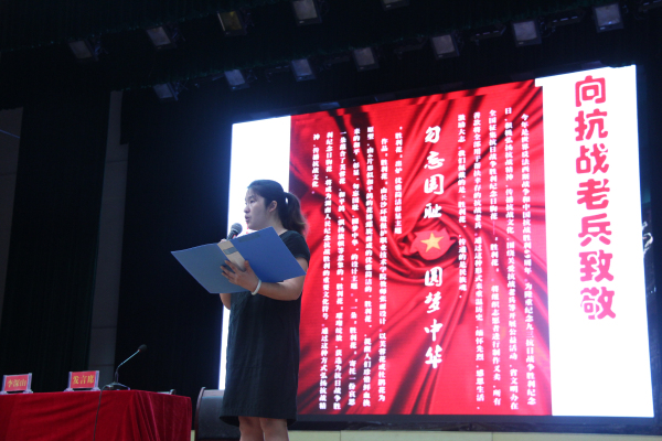 开学典礼举行前,学生科陈郁科长向全校师生介绍了佩戴“胜利花”的来历及意义,并和大家一起观看了习近平等7常委纪念抗战向烈士敬献花篮的视频。“胜利花”凝聚着民族魂,凝聚着对抗战老兵的大爱。观看完视频后,在场的每一位师生都郑重地把胜利花佩戴胸前,以最简朴的形式弘扬抗战精神,传播抗战文化。一起重温历史、缅怀先烈,感恩生活,激励大志。