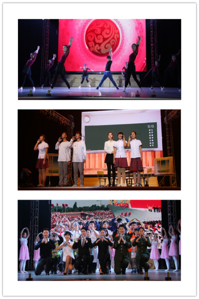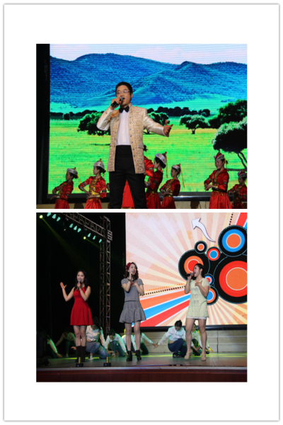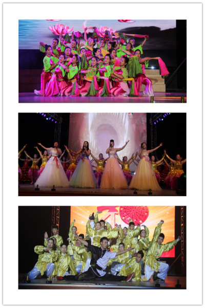 一首由李慧中副校长演唱的《骏马奔驰保边疆》拉开了演出的序幕,接着一系列舞曲串烧让现场沸腾了起来。两位主持人——张春晗老师和毛提老师的亮相立刻引起了全场的热烈掌声。接下来的节目演出更是精彩纷呈,廖乜也老师演唱的《山寨素描》节奏欢快、歌声愉悦,李利德老师带来的独舞《老爸》感人至深,戴申林老师表演的《醉拳》以及刘千红老师演唱的《走向复兴》等节目让台下的观众连连叫好、掌声不断;由吴艳芳老师和几位同学带来的小品《爸爸妈妈,我想你们了》让现场很多观众感动的掉下了眼泪;全体舞蹈老师演绎的神曲《最炫民族风》动感十足,青春洋溢,high翻全场,青春的律动一览无遗。校民族舞队的《六月清荷》灵动活泼,讨人欢喜;众多老师表演的手语《和》将演出推向最高潮。最后一曲歌伴舞《共圆中国梦》为整场演出划下完美句点。