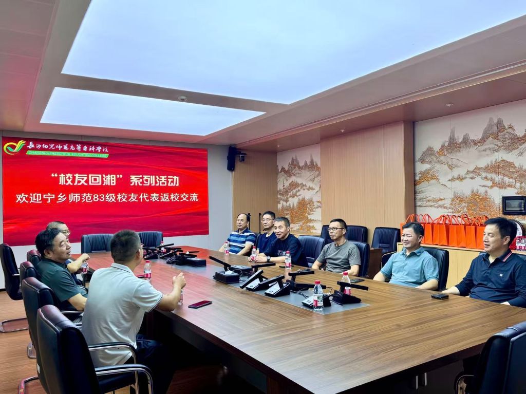 9月18日,我校83级(80年代宁乡师范恢复招生后的首届初中毕业起点的普师班)优秀校友代表广东建艺设计集团戴虎强、湖南新开泰花鼓戏演艺有限公司喻亮清、湖南博晓展览有限公司廖拥军等一行7人重返校园,参加“校友回湘”交流活动。党委副书记兼纪委书记李慧中、老领导李深山、老教师熊科、招生就业处处长兼校友办主任高凡等参加活动。