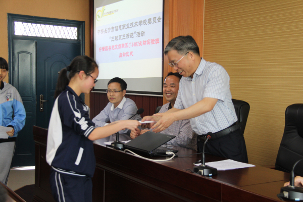 行管服务党支部书记、招生就业科科长何重兴在仪式上讲话