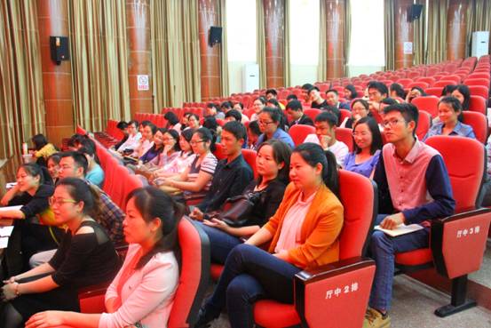 随后,优秀青年教师代表吴艳芳、吴锐、肖琼、黄武四位老师从学生管理、教育教学、团队合作以及个人成长经历四个方面进行了专题发言。吴艳芳老师提倡用“疏而不堵”的方式来解决学生早恋问题;吴锐老师讲述了自己从优柔寡断到成熟稳重的心路历程,告诉大家,团队协作和个人努力在其中的重要作用;肖琼老师结合自己的英语教学经历,以演讲的形式介绍了自己以及班级的成长与蜕变,给在座的各位上了一堂生动的“班主任岗前必修课”;黄武老师用幽默的语言讲述了自己奋斗的经历,告诉大家天道酬勤。四位老师精彩、走心的发言引来台下一阵又一阵热烈的掌声,气氛非常活跃。
