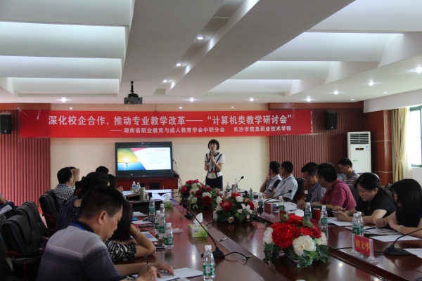6月11日,由湖南省职业教育与成人教育学会中职计算机教学研究会主办的计算机类专业教学研讨会在长沙市信息职业技术学校举行。省教科院职成所吴甚其主任;长沙市政府副主任督学、职教基地管委会封纪琴副主任;联想培训学院杜金晶副院长;长沙市信息职业技术学校郭正良校长等领导出席会议。