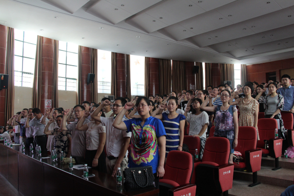 6月29日,长沙市信息职业技术学校在汇智厅隆重举行庆祝建党九十四周年总结表彰暨新党员宣誓仪式。仪式由学校郭正良校长主持。全体在职党员、预备党员、青年党校全体成员共200余人参加会议。