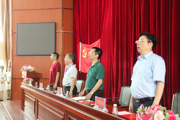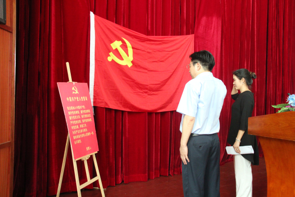 仪式在雄壮的国歌声中拉开了帷幕。党委书记张国斌宣布吸收预备党员决定。在纪委书记李深山的领誓下,新党员和老党员面向鲜红的党旗庄严宣誓。新党员代表彭繁珍同志作了发言。学校副校长李慧中宣读了优秀党员表彰通报。信息党支部、艺术党支部被评为先进基层党支部,张学锋等3位老师被评为优秀党务工作者、廖小勇等20位老师被评为优秀党员。优秀党员代表肖琼老师发表感言。