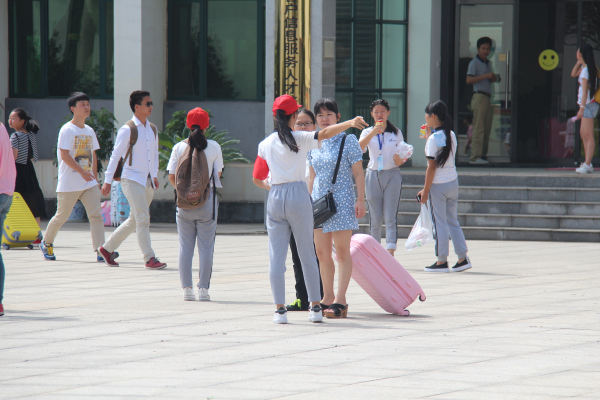 校园内,彩旗飘扬。德馨楼上,对联高高挂起,寄予对学校全体师生的厚望与勉励。在全体教职工的辛勤准备下,学校的环境更显整洁雅致。迎新工作如火如荼,到处都是忙碌的身影。各服务点教职员工和学生志愿者,有条不紊地进行了热情、细心的接待,为新生报到提供各类入学指导和便捷服务。各行管部门的负责人和工作人员也全天坚守在迎新现场,以确保迎新工作安全稳定有序地完成。全程人性化的服务、干净优美的环境使前来报到的家长和学生们感到“宾至如归”。