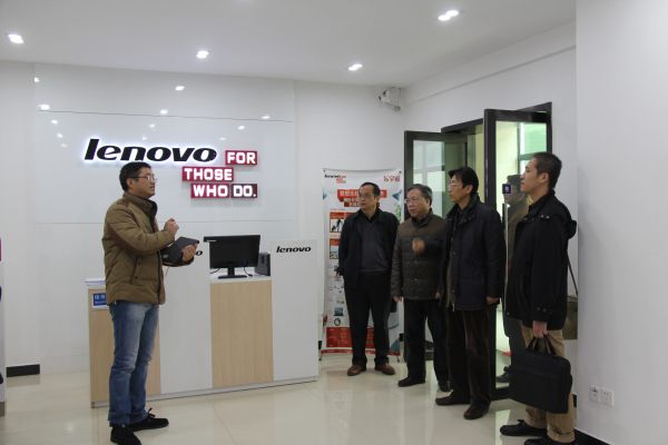 在学校领导的陪同下,客人们还兴致勃勃地参观了设在我校技馨楼的客户信息服务专业实训基地和联想3C一体化实习实训基地。