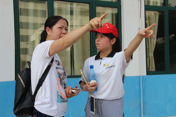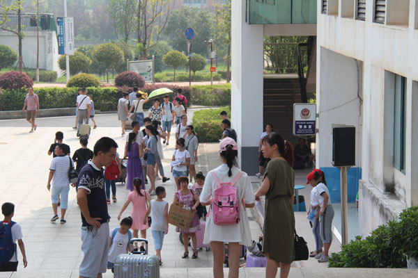 因秋老虎威力不减,8点不到,校园里已经来了不少报到新生。对新生来说,偌大的校园他们未免有些陌生,为了使前来报到的新生和家长快速进班报到,学生科特别安排了50多名志愿者,随时准备为新同学答疑解惑,给新生和家长指路、带领新生和家长入班、带领他们进入生活区,等等。