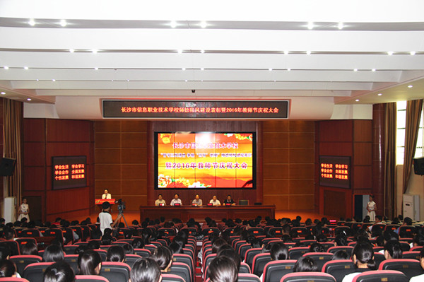 9月9日下午,我校全体教职员工和部分学生代表齐聚汇智厅,举行“甘守三尺讲台,争做‘四有’老师”师德师风建设暨2016年教师节总结表彰大会。学校领导班子出席表彰大会,党委书记张国斌主持表彰大会。