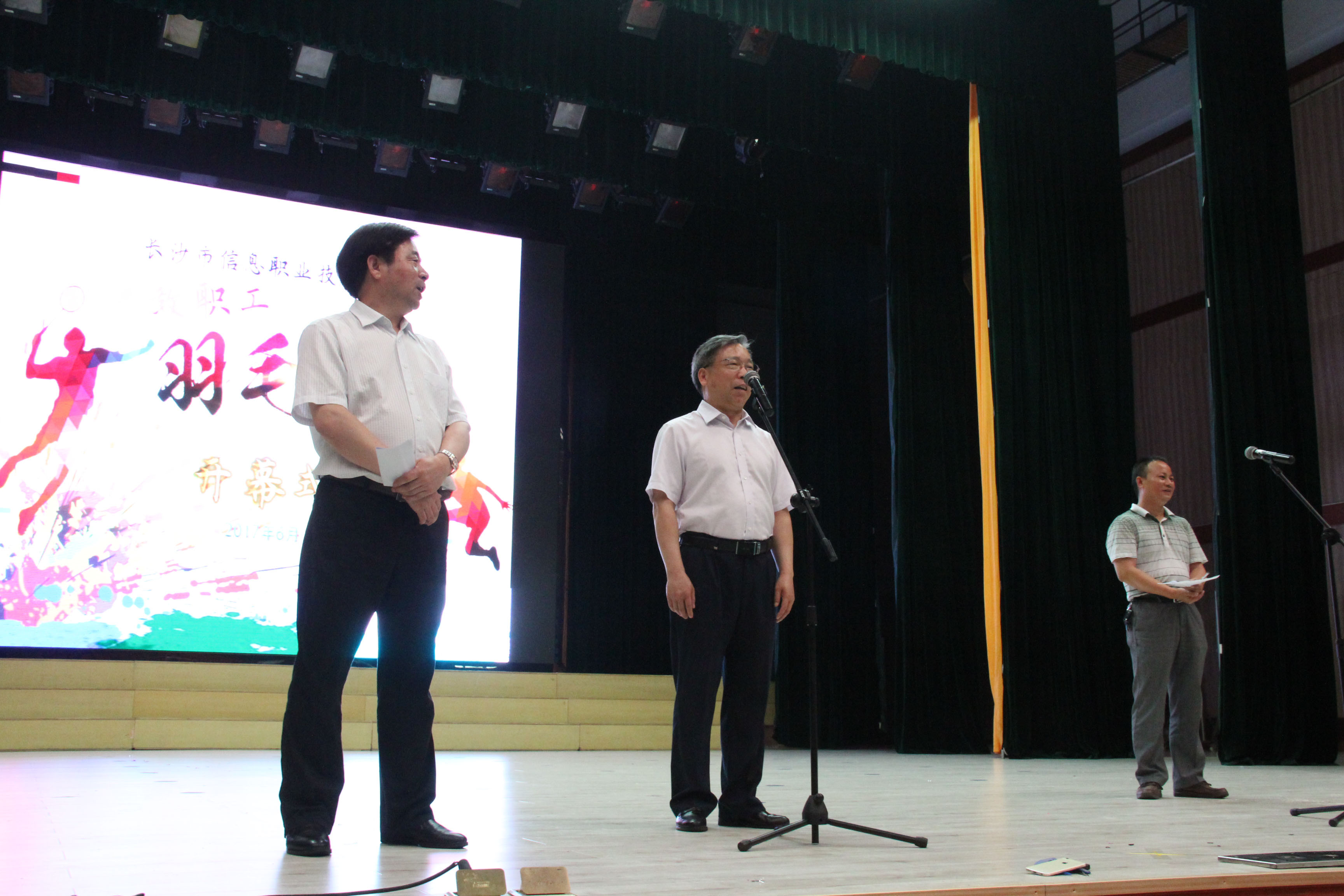 随着党委书记张国斌宣布“长沙市信息职业技术学校2017年教职工羽毛球比赛开幕”和郭正良校长的挥拍开球,羽毛球比赛正式开始。