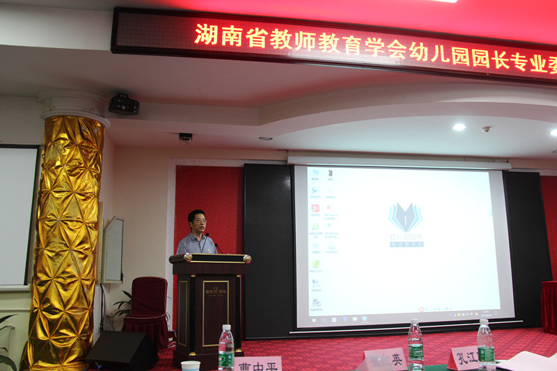会议由湖南省教师发展中心主任贾腊生主持,宣读了《关于幼儿园园长专业委员会第一届理事会推荐人选的批复》,我校校长郭正良当选为副理事长;审议通过了《湖南省教师教育学会幼儿园园长专业委员会章程》;湖南省教师教育学会会长、原教育厅纪委书记周德义,副会长、省教育厅级副巡视员贺安溪等领导作重要讲话。