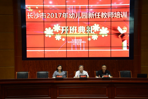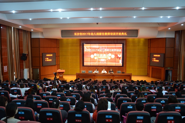 云天收夏色,木叶动秋声。9月21日上午,202名来自长沙各地幼儿园新任教师欢聚在长沙幼儿师范学校汇智厅,隆重举行长沙市幼儿园新任教师培训开班典礼。学校党委书记张国斌,长沙市学前教育研训中心副主任阳艳波出席本次开班典礼,大会由学校副校长李慧中主持。