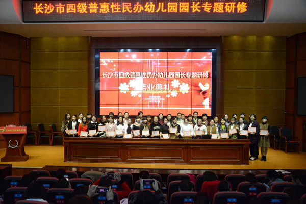 10月15日上午,2017年长沙市四级普惠性民办幼儿园园长专题研修结业典礼在长沙幼儿师范学校汇智厅隆重举行。本次研修班全体学员参加了典礼。典礼在生动而充实的生活视频中拉开序幕,短短四分钟的视频,带领大家回顾了充实的四天培训学习生活。