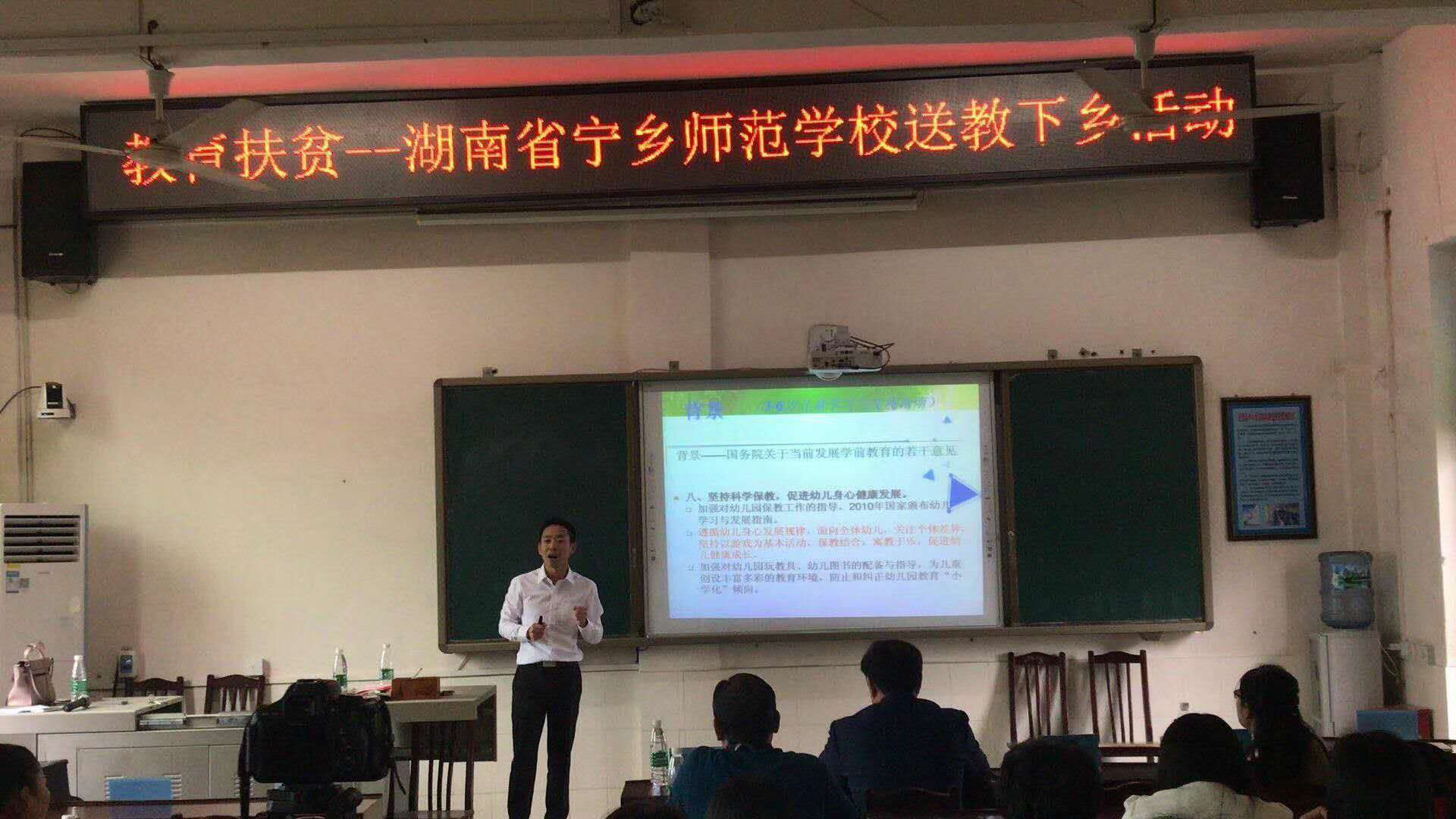11月16日,何重兴科长带领学校学前教育专业带头人林静老师、青年骨干教师陈意、高凡老师等一行四人前往宜章县赤石乡,开展“送教下乡,关爱留守儿童工作”。活动为期两天,一是为宜章县幼儿园园长和部分老师进行业务知识培训和教学研讨活动,二是看望和慰问留守儿童。