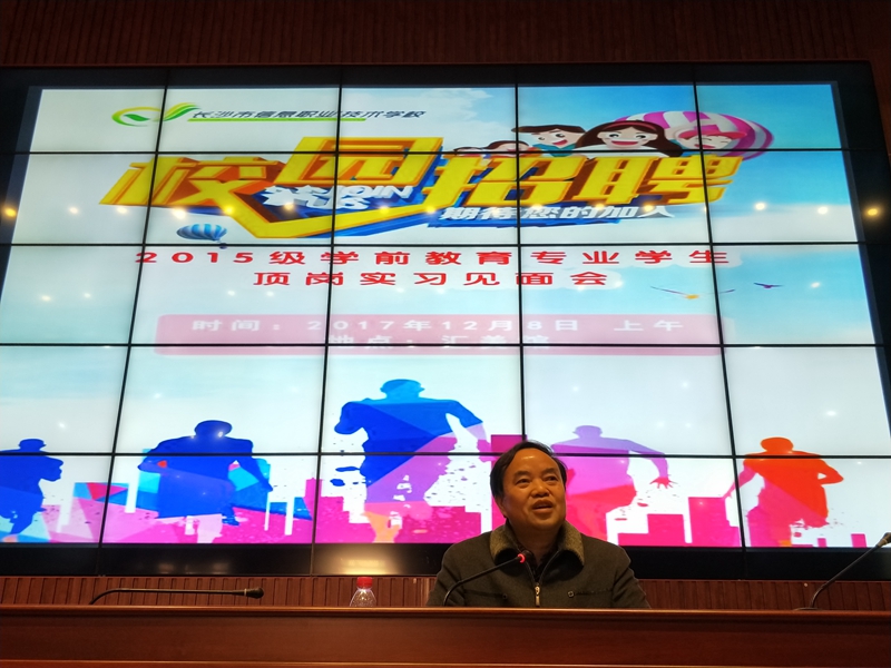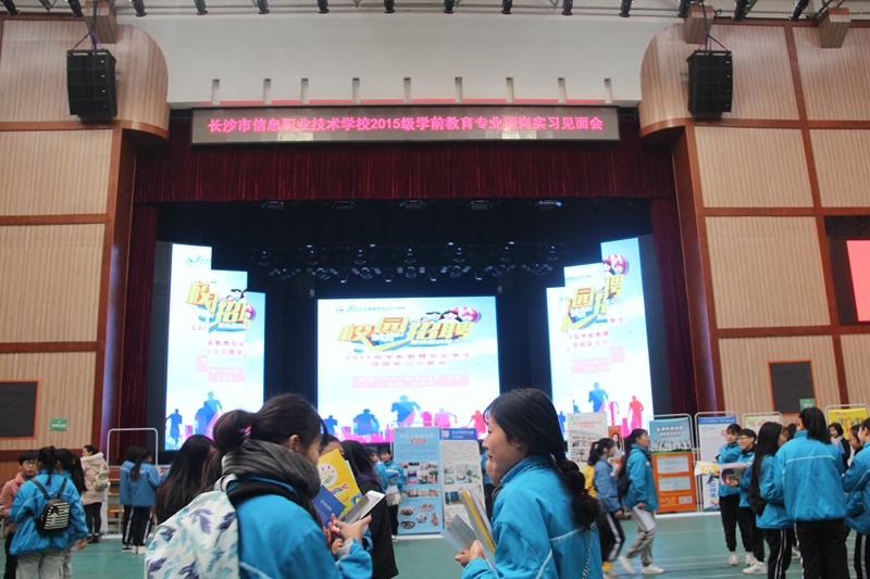 12月8日,我校2015级学前教育专业学生顶岗实习见面会在学校汇美馆隆重举行,82家通过考察的幼儿园,为我校216名实习生提供了500余个实习岗位。其中,省机关第一幼儿园,省机关第二幼儿园及岳麓区、天心区和芙蓉区教育局幼儿园等20多家公办园提供了近百个实习岗位。