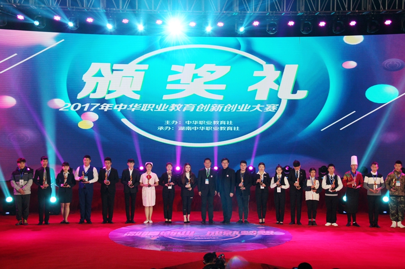 12月22日晚,我校协办的2017年中华职业教育创新创业大赛完美收官,大赛颁奖式在我校汇美馆隆重举行。中华职业教育社党组书记、总干事方乃纯,人力资源和社会保障部职业能力建设司副司长何良平,中华职业教育社党组成员、副巡视员李英爱,教育部职业教育与成人教育司副处长任占营,中共湖南省委统战部副部长邓焕生,湖南省教育厅副厅长、湖南中华职业教育社副主任应若平,湖南省人力资源和社会保障厅副巡视员吕志纲,长沙市信息职业技术学校校长郭正良等出席颁奖式,大赛评审专家、各参赛学校代表、各新闻媒体代表及我校师生近千人参加了颁奖式。