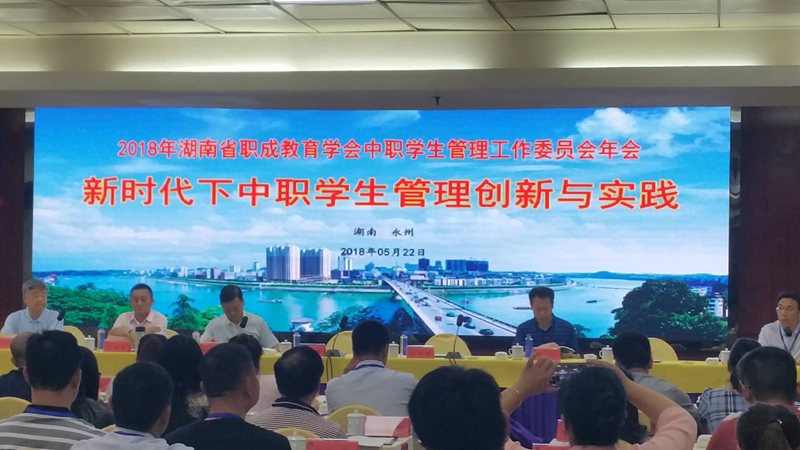 5月22日上午,2018年湖南省职业教育与成人教育学会中职学生管理工作委员会年会在永州召开,会议特邀全国知名德育专家中国教师发展研究中心研究员、讲师余国良做专题辅导。湖南省教育厅职成处、各市州职成教研机构负责人等相关人员参加会议,我校学生科科长周曦、班主任彭勃、周洁参加会议。