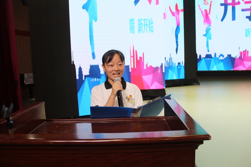 刘满莹老师作教师代表发言,她表示新学期将会秉承学校“学高为师,德高为范”的古训,踏实做好自己的本职工作,关注学生成长,关心学校发展,并对学生提出几点建议,希望同学们能做一个有目标导向、持之以恒、懂得拒绝诱惑的人。随后,1607班唐思鸿同学作学生代表发言。