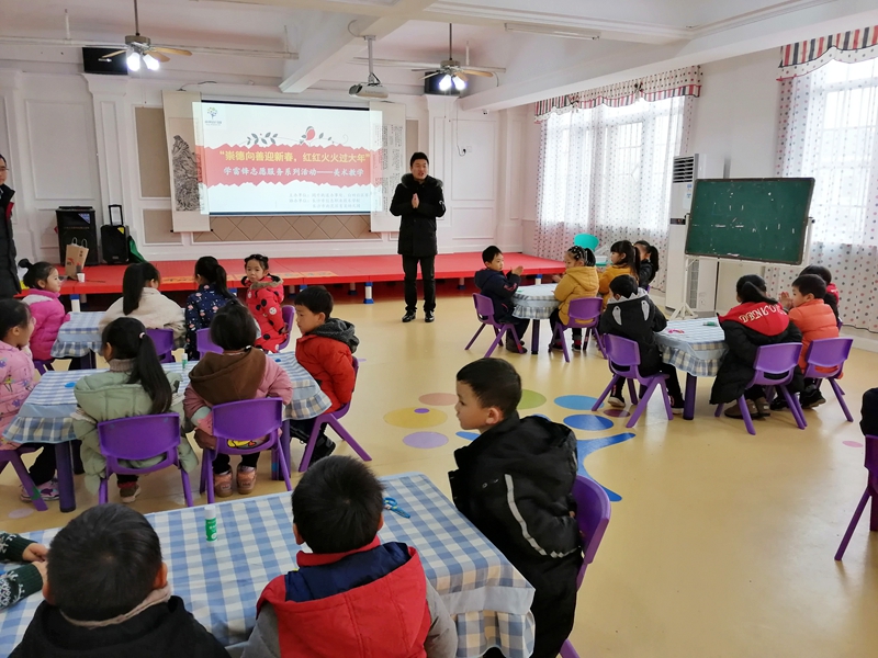 “老师,这是福字,过年的时候我们就会把它贴在门上,是倒着贴,就像这样……”1月9日,我校党员志愿者们来到雨花区同升街道育英幼儿园,亲切地和小朋友们一起互动游戏。