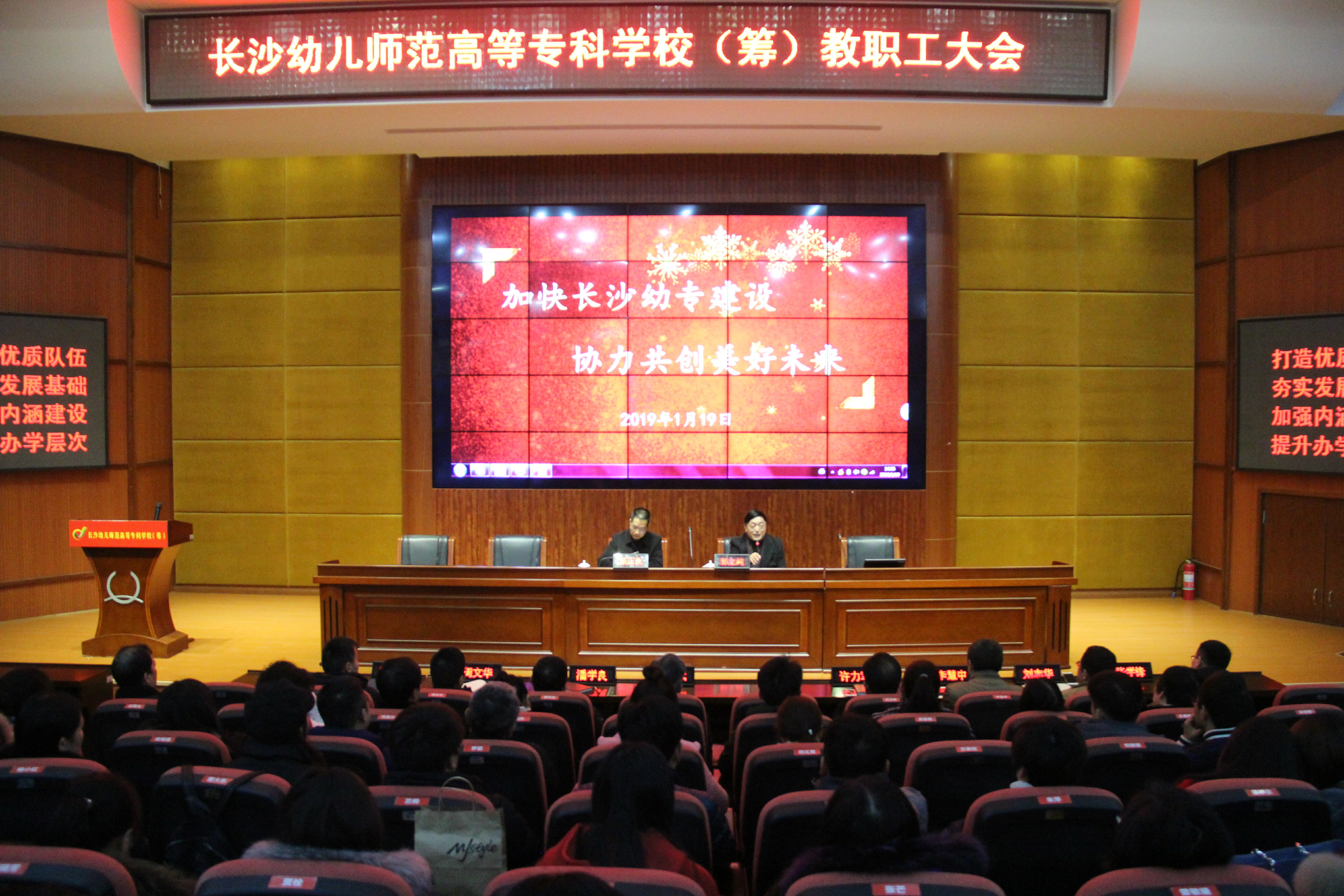 1月19日下午,湖南省宁乡师范学校与长沙艺术实验学校合并后的首次教职工大会在汇智厅举行。学校特邀湖南幼儿师范高等专科学校创校校长郭立纯作幼专创建报告,两校领导及全体教职员工参加会议,会议由学校校长郭正良主持。