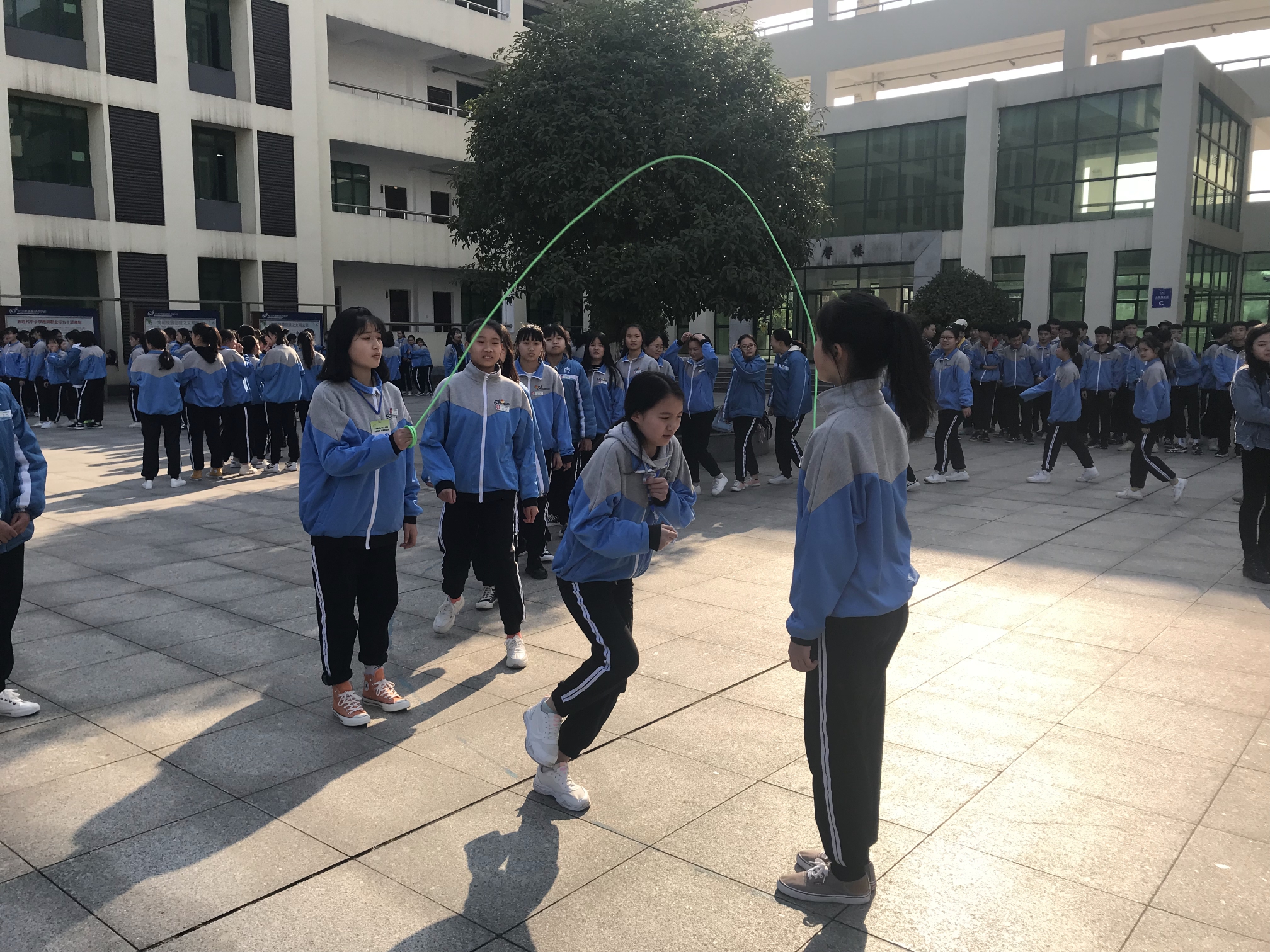 第六节课下课后,各班学生伴随着《运动员进行曲》向指定场地迅速集结,顿时校园里人头攒动,一片生机勃勃的景象。数分钟后,各年级学生在班主任和裁判员老师的组织下,以班级为单位整齐有序地站在指定的候场位置,认真地倾听裁判员老师讲解有关比赛的规则和计分方法。接下来,同学们在班主任的统一组织下进行了短暂的热身活动。随着裁判员一声哨响,比赛正式开始,上场的班级迅速调整状态,投入到激烈的竞争对抗之中,同学们个个不甘落后,跳绳或垫球成功后的鼓掌和欢呼以及失误后的加油鼓励充分展示了班级的团结与友爱、包容与理解。在旁观看的班级也没有闲着,他们坐姿端正,全班声音整齐的给正在比赛的班级呐喊加油,在鼓励别人的同时,也对自己在场上的表现充满了信心与期待。