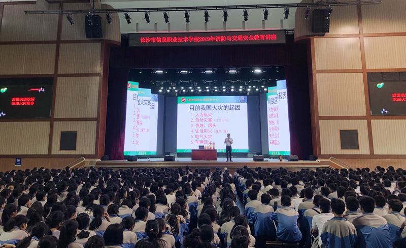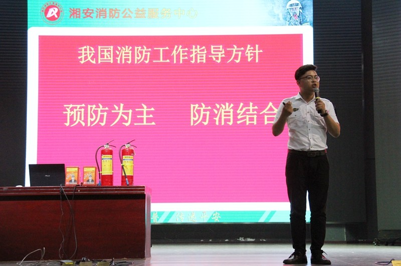 为切实提升学生消防安全、交通安全、预防溺水的安全意识,4月23日下午,在我校保卫科、学生科、教务科、团委的联合组织下,由湘安消防公益服务中心的教官孟萌主讲,全校学生在学校汇美馆开展了2019年消防安全、交通安全、预防溺水安全教育讲座。