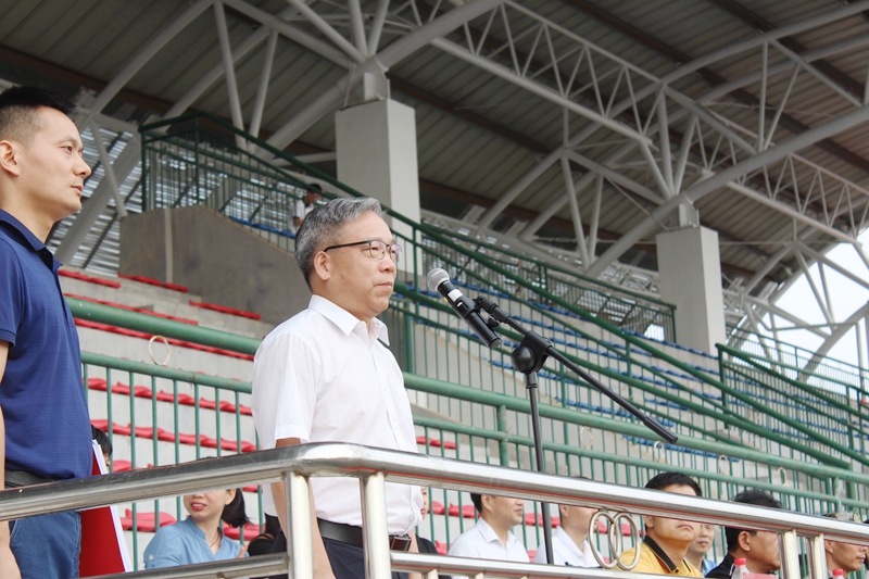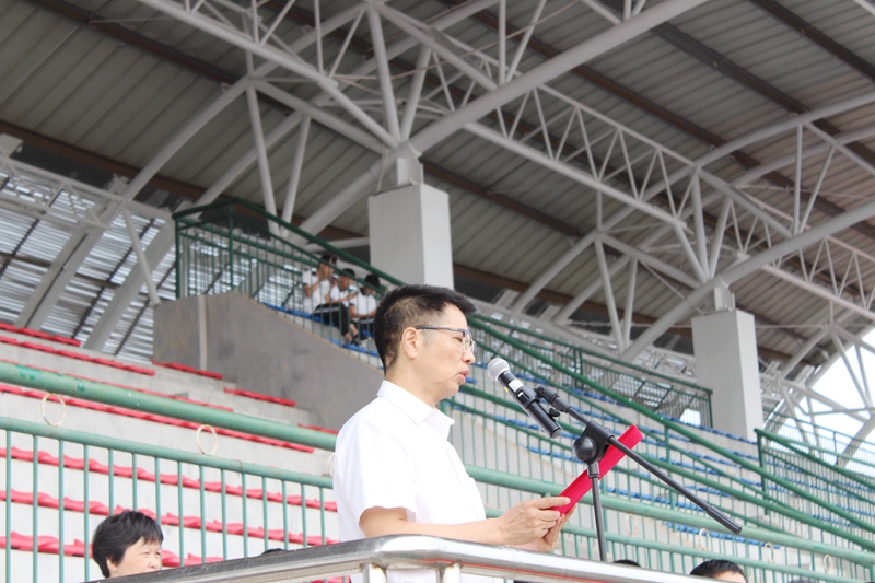 校长郭正良向长沙幼儿师范学校军训营授旗,各军训教官依次接旗。他向全体新生表示热烈的欢迎,向即将为本次军训付出辛苦劳动的全体教官同志们,表示衷心的感谢。他要求全体新生从军训开始去领悟、去探索职高三年如何度过;要明白自己的身份与使命;要团结互助共同成长;希望2019级同学们能不负众望,以自己的拼搏努力顺利完成军训任务,向教官、向家长、向老师、向学校交上第一份优秀的答卷。