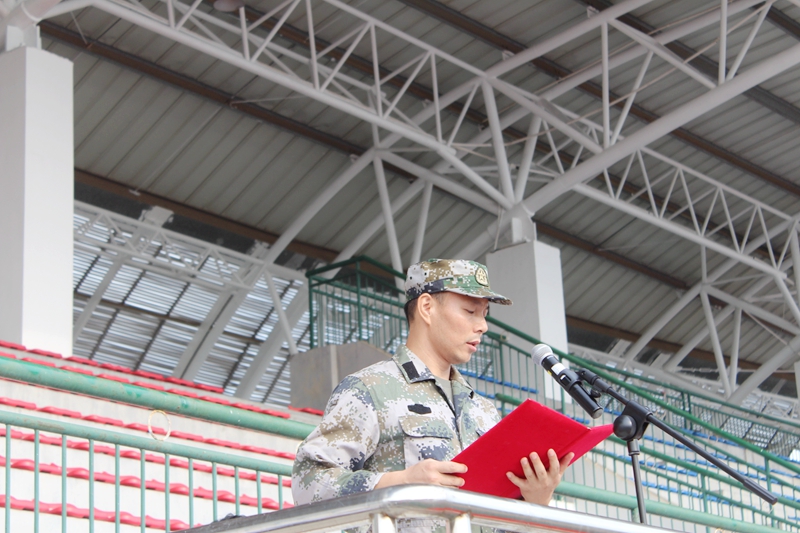 党委书记张国斌宣布军训开始。开训典礼后,长沙幼儿师范学校为期七天的2019级新生军事训练正式开始。