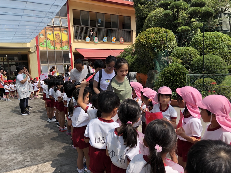 9月25日8:40,长沙幼儿师范学校赴日本文化艺术交流团准时从鹿儿岛市松屋别馆出发,步行至和光幼稚园。