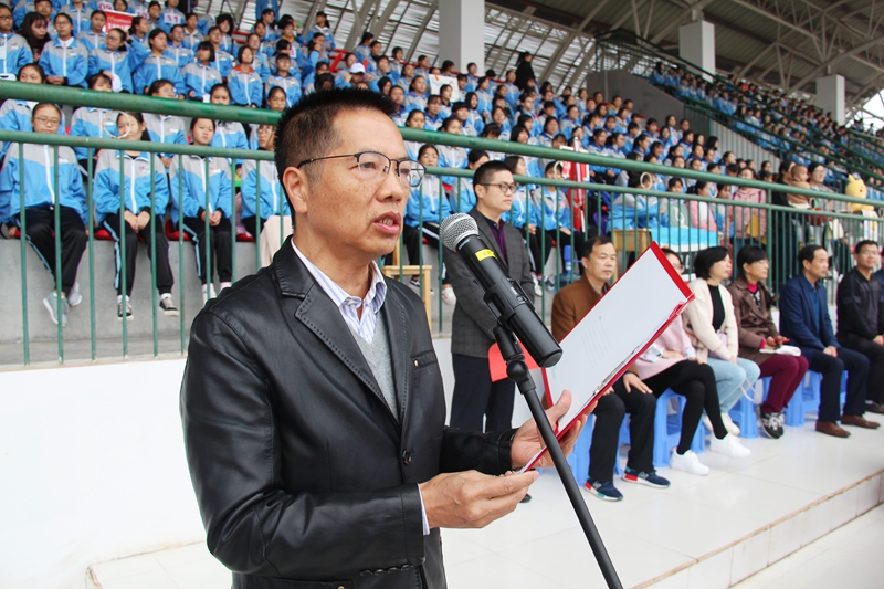 随后,校长郭正良致开幕词。首先代表学校对第一届运动会的顺利召开表示热烈祝贺。他说,此次运动会是学校合并后的第一次运动会,同时也是学校凝神聚力,开拓进取,开创发展新局面的重要举措,它的成功举办将揭开学校发展史上的新篇章。希望全体师生在运动场上能赛出水平,赛出友谊,增进了解,树立良好的学风校风以促进学校又快又好发展。