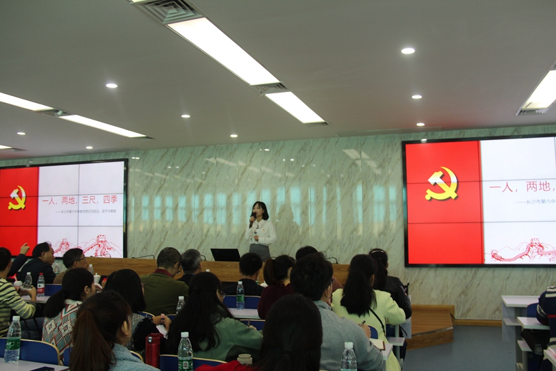 首先,学校党委书记张国斌进行致辞,他代表学校向前来参加公开课各位教师表示热烈欢迎。随后,六个学校的主讲人给我们呈现了精彩纷呈、各具特色的精彩公开课。他们通过一个个感人至深的教育故事,一段段深刻难忘的教育经历,诠释了教育人对初心的矢志追求和对使命的担当。长沙市雷锋学校教师陈璐以《为谁辛苦为谁甘》为题讲述了郭兵老师开办义务辅导站,争做新时代雷锋精神的传承者。长沙幼儿师范学校教师毛提以《三尺讲台写春秋,一生无悔系教育》为题讲述班主任周艳老师注重爱的教育,用心、用情、用爱的感人教育故事。长沙市第六中学教师马熹茜的公开课《一人,二地,三尺,四季》,用自己的行动证明了她的初心,讲述了自己的教育经历与感悟,充分彰显了共产党员的本色。长沙市雅礼洋湖实验中学教师唐玉婷,用三张桌子的故事,刻画了一位“捧着一颗心来,不带半根草去”的光辉教师形象。长沙市雅礼实验中学教师陈钱通过优秀教师汪金权的感人故事,引出一大批优秀教师代表,深刻诠释了奉献奋进的“雅实精神”。湖南省地质中学教师冷彬彬甘做教育事业无悔的守望者,她对教育的热爱、对学生的深爱、对工作的认真态度,令人感动。