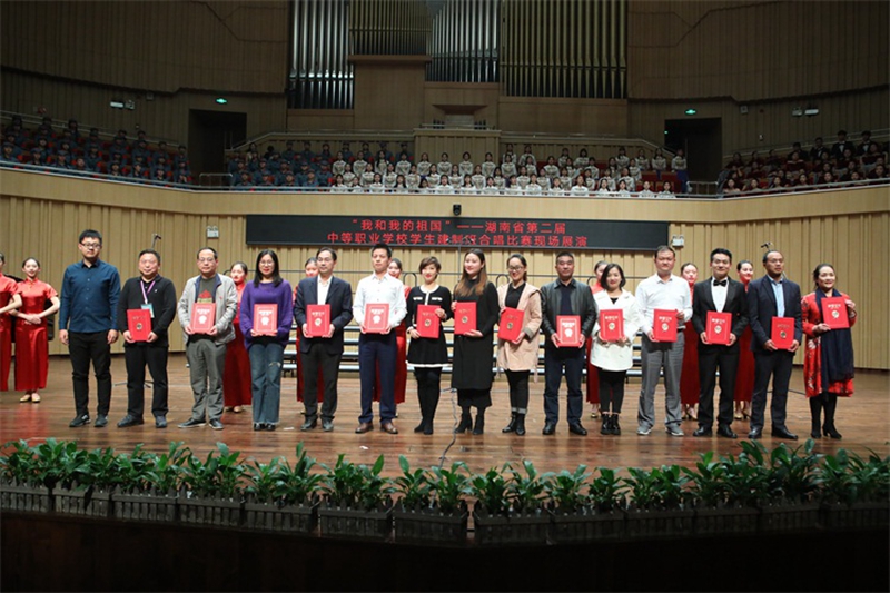 在颁奖仪式中,长沙市教育局获得优秀组织奖,我校1805班荣获湖南省第二届中职学校成建制班级合唱比赛的优秀节目奖,校长助理刘建乐代表我校上台领取获奖证书。同时,学校还承担了礼仪和迎宾等任务,受到省厅领导的高度赞扬。