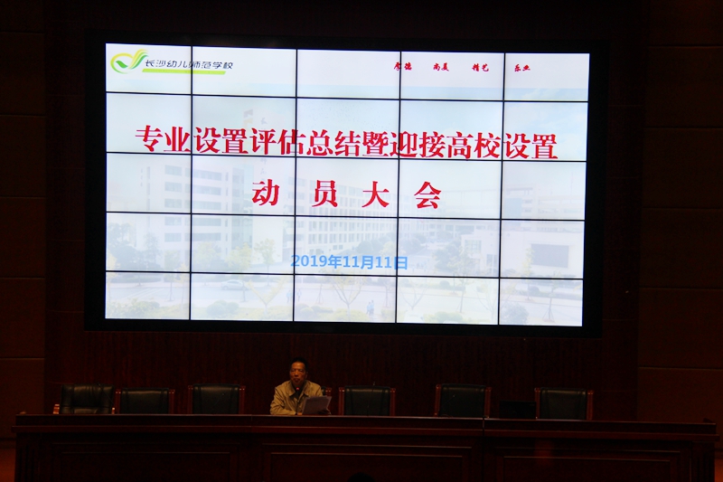 11月11日下午,长沙幼儿师范学校在汇智厅召开了专业设置评估总结暨迎接高校设置动员大会,本次会议的主题是“同心同德 众志成城 总结经验 再接再厉 打好学校升专整体评估迎检战”。一份耕耘一份收获,学校于11月6日顺利通过了湖南省教育厅高等学校师范类国控专业评估组的专业设置评估,并赢得了专家组全体专家的一致好评与高度赞扬。今天我们要总结经验,表扬先进,弘扬乐于奉献、敢打敢拼的精神,激励全校教职员工积极迎战学校升专全面评估。学校党委班子成员、中层干部、全体教职员工参加会议。