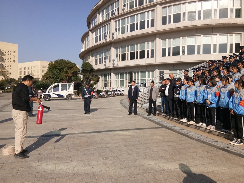 长沙职业教育基地汇集了六所职教名校,拥有4万多名师生员工。人员密度大,教室、实训场、实验室、机房、图书馆、食堂、学生公寓等设施设备集中均是安全事故易发因素,安全管理面临极大的考验。经过多年的努力和实践,我校的安全管理水平和安全教育成果一直以来被全基地所肯定。为了增强基地物业人员的消防安全意识,提高消防处置能力,在职教基地协调办、保利天创物业等负责人组织下,2019年11月14日上午我校保卫科受职教基地协调办的邀请,对全基地100多名学校物业人员进行安全培训和消防演练指导,我校60多名学生干部,兄弟学校的安全专干也到场参与了学习与观摩。