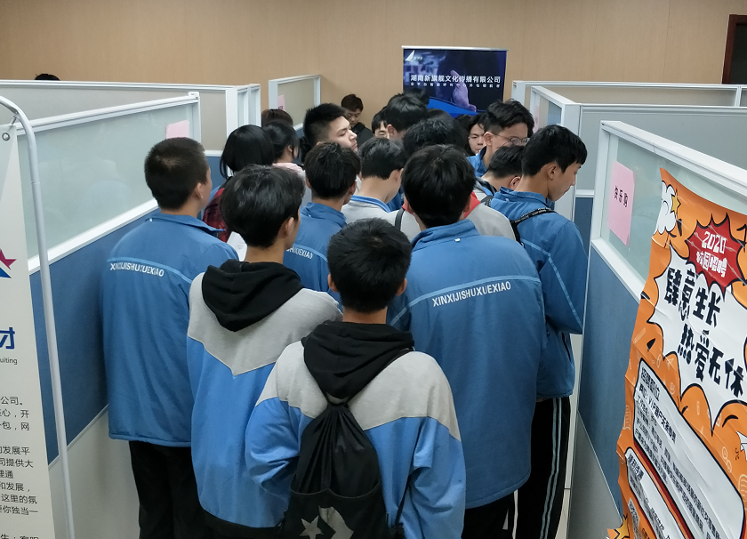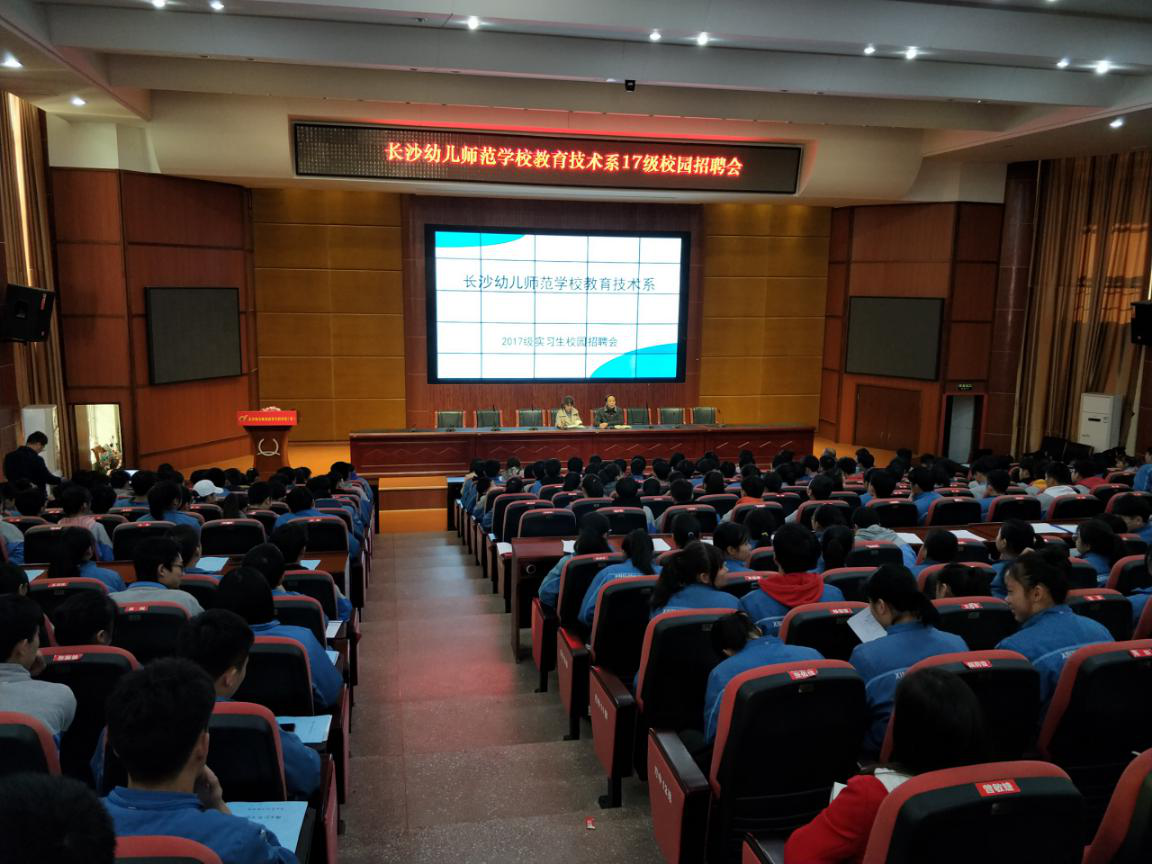 这是2019年12月13日上午长沙幼儿师范学校2017级教育技术系实习生招聘大会的现场。本次招聘会由招生就业与校企合作科主办、教育技术系协办,招就科何重兴科长、伍莉副科长主持会议。来自长沙本地产业链的融祥、汇富康达、合巨、海普、快乐购、新旗舰等六家大型知名公司在我校进行了精彩的集中宣讲,他们为同学们阐述了自己公司的业务范畴和工作性质,为同学们抛出了优厚的工作待遇和广阔的提升空间。同学们根据自己的实习实训目标和就业需求,向各家公司投送了自己的就业推荐表。超九成的实习生现场达成了实习协定。